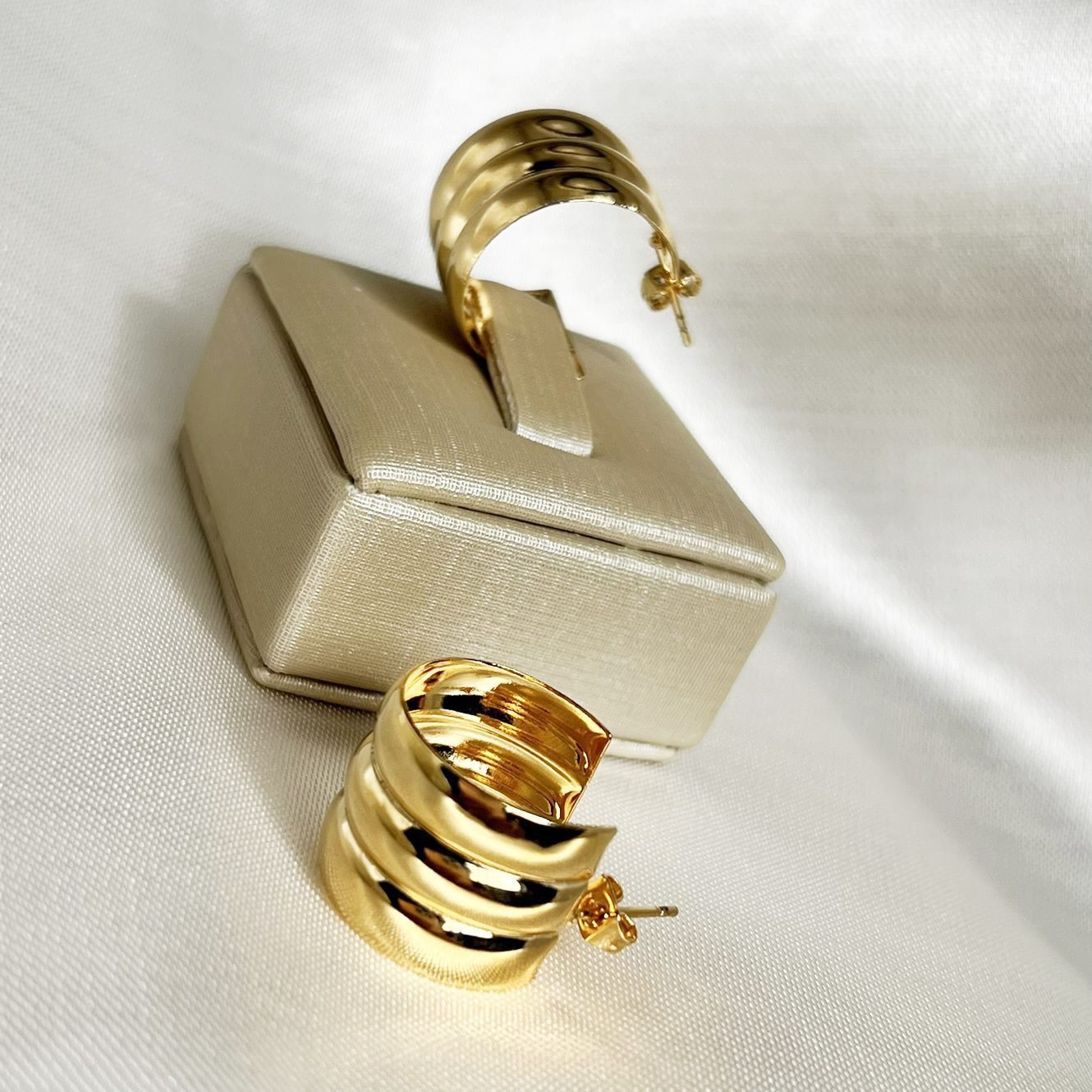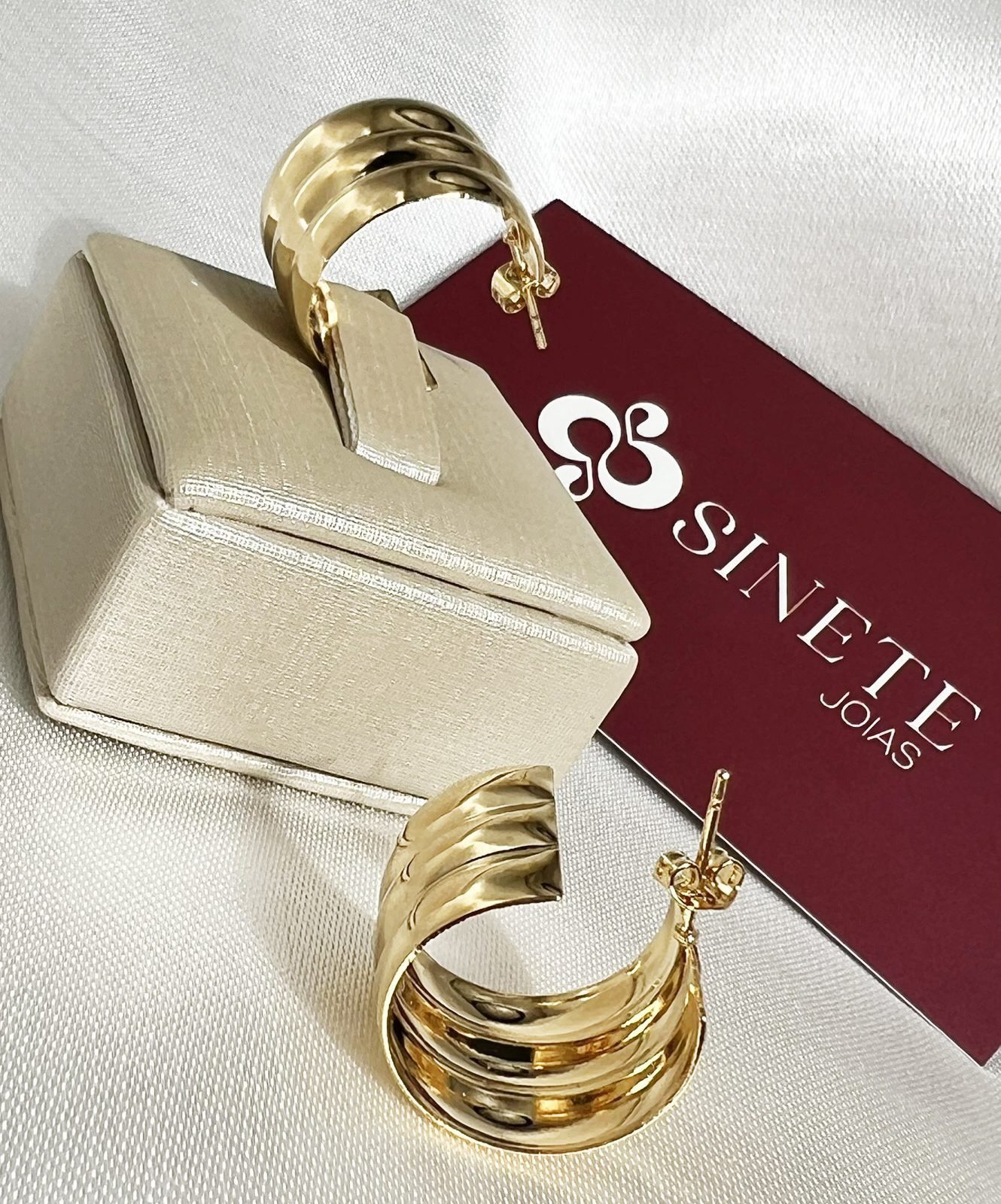 Brinco Canelado Largo – Design Escultural | Banho Ouro 18k
