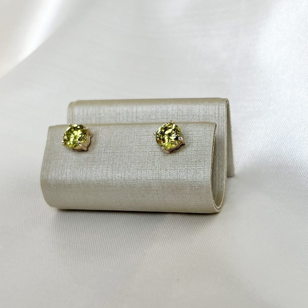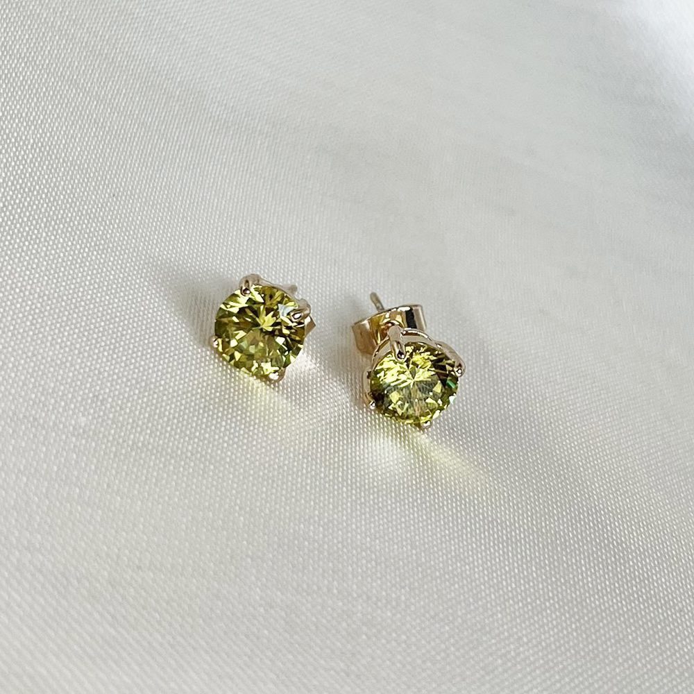 Brinco Ponto de Luz Verde Limão – Banho Ouro 18k