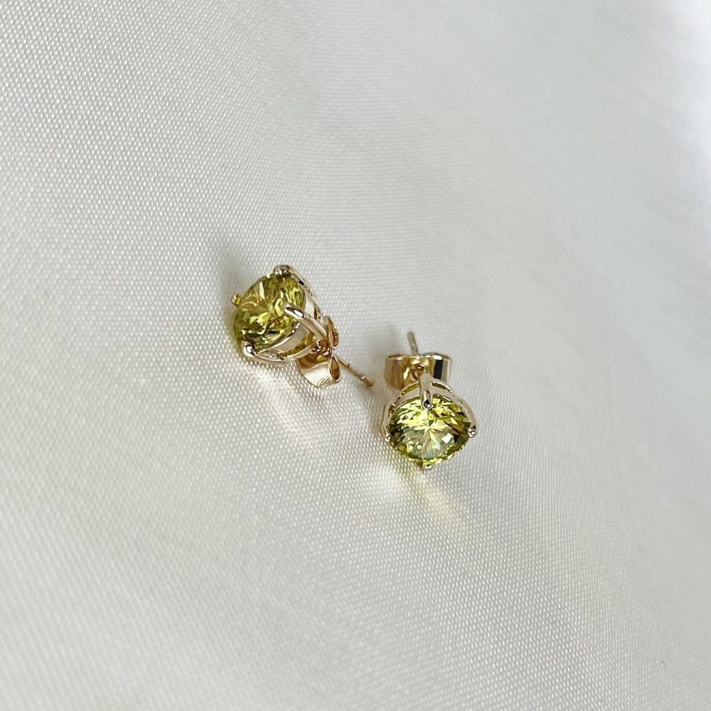 Brinco Ponto de Luz Verde Limão – Banho Ouro 18k