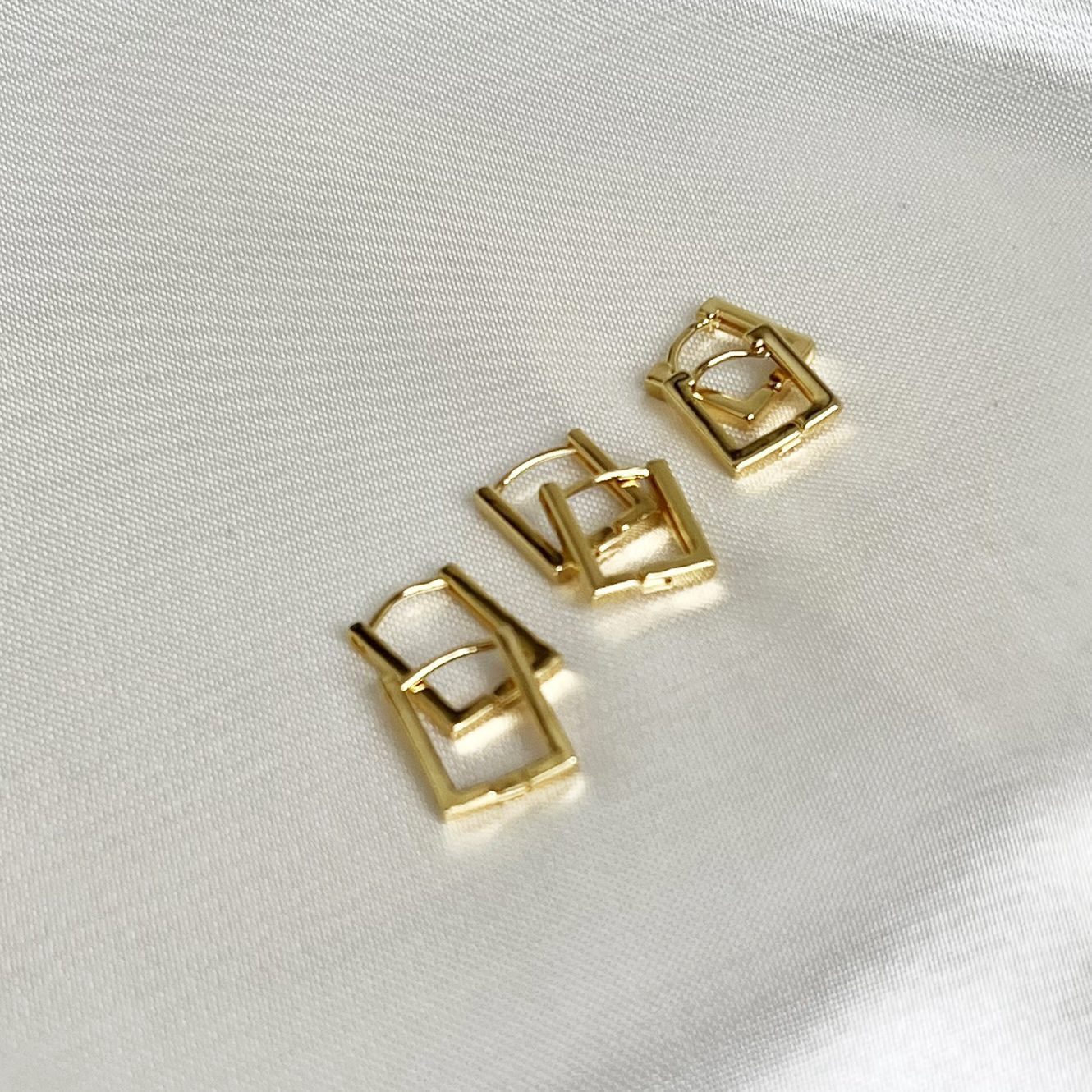 Brinco Trio Geométrico Quadrado | Banho Ouro 18k