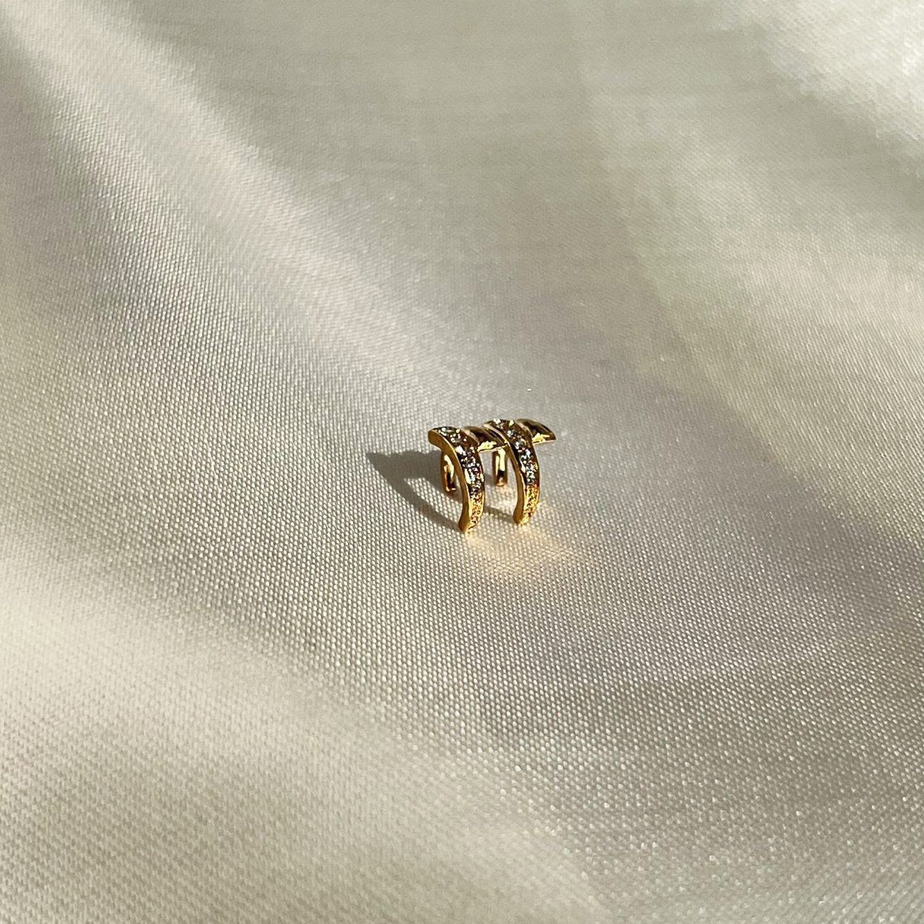 O Piercing Fake Triplo é a definição de atitude com sofisticação. Com três arcos paralelos cravejados com zircônias cintilantes, ele cria um efeito moderno e impactante sem a necessidade de perfuração. Ideal para quem deseja compor o look com personalidade, brilho e conforto.