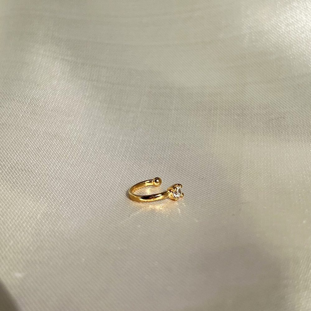 Elegante e minimalista, o Piercing Fake com Cristais é a escolha perfeita para quem busca estilo com praticidade. Sua estrutura delicada abraça a orelha com conforto e segurança, sem necessidade de perfuração. O Cristais central reflete a luz com sofisticação, garantindo um toque de brilho sutil e moderno em qualquer look.